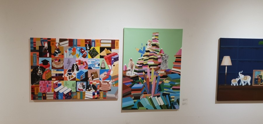 아크릴화_글쓰기는 어렵다_포트폴리오 돌탑이 책탑이 되어~~ 제주 돌문화 공간 부분 사진 김선희, 글쓰기는...