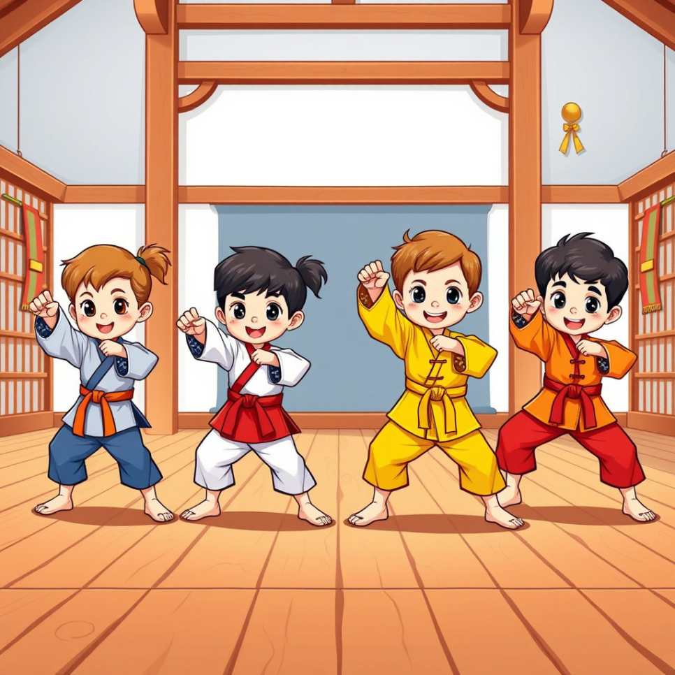 이야기는 작은 산골 마을에서 시작됩니다. 해마다 열리는 무술 대회 소식은 마을 사람들에게 가장 큰 축제였고, 아이들에게는 꿈이었지요. 주인공 지훈은 아직 어리고 서툴지만 누구보다 강한 마음을 가진 아이입니다. 친구 민호, 수아, 소연과 함께 도장을 찾아가 특별한 수련을 받으며, 무술의 진정한 의미를 배우게 되지요.