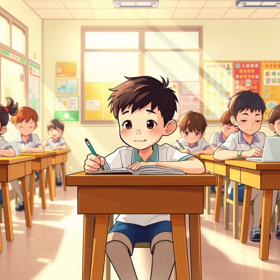 학원에서 민준이는 새로운 친구 지훈을 만났다. 서로 모르는 문제를 알려주며, 웃음 속에 공부의 재미를 발견한다. “같이 하면 어렵던 문제도 풀 수 있어!” 학원은 단순한 공부 공간이 아니라, 작은 도전과 성취의 장이었다.