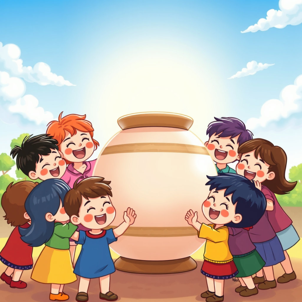 어느 마을에 가난한 이웃이 살았어요. 먹을 것이 떨어져 슬퍼할 때, 다른 집에서는 달항아리 속 곡식을 조금씩 꺼내 가져다주었지요. “조금씩 나누면 모두가 배부를 수 있단다.” 어른들은 아이들에게 가르쳤어요. 달항아리에서 나온 쌀 한 줌이 이웃의 웃음으로 변했고, 물 한 그릇이 따뜻한 인사로 변했지요. 달항아리는 단순한 그릇이 아니었어요. 그것은 이웃과 마음을 나누는 달빛이었답니다.