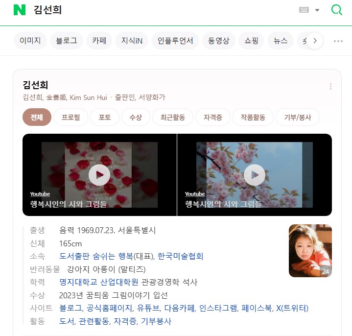 도서목록은 인물정보에서 네이버
