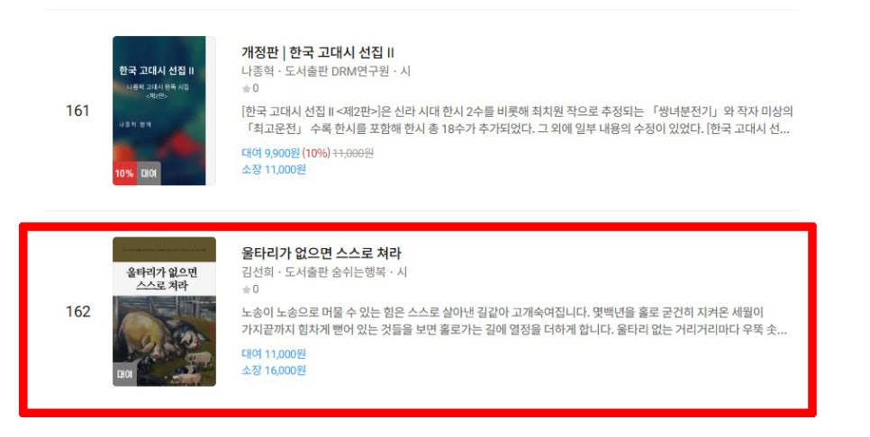 리디북스 국내여행 베스트셀러 전자책 35권...시집들 94권