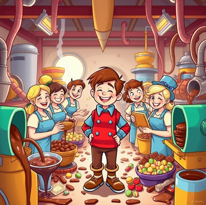 윌리 웡카의 공장은 이제 찰리의 것이 되었어요. 그는 공장을 관리하며, 더 많은 사람들에게 행복과 기쁨을 나누고 싶어 했어요. 찰리는 공장에서 일하며 자신이 배운 것들을 실천했고, 모든 일에 최선을 다했어요. 그는 어린 시절 가난과 어려움을 겪었지만, 이제는 공장에서 행복한 시간을 보내며 꿈을 이루었어요. 찰리는 그 꿈을 통해 자신과 세상을 바꿀 수 있다는 것을 배웠어요.