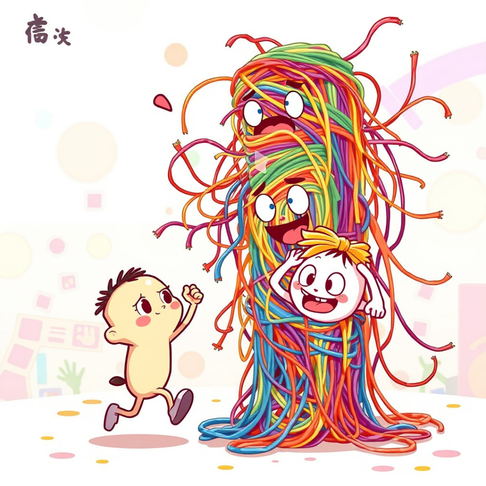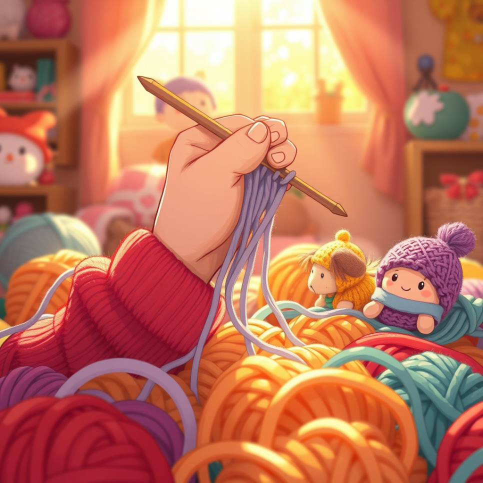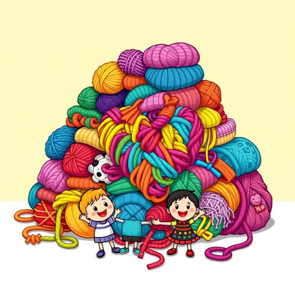 실타래 마을에는 '뿡실'이라는 말썽쟁이 털실이 있었어요. 뿡실이는 다른 실들보다 훨씬 빨리 움직이는 걸 좋아했죠. 오늘도 뿡실이는 "내가 제일 빨라!" 하고 소리치며 신나게 이리저리 뛰어다녔어요. 뿡실이가 지나간 자리마다 실들이 엉키고 꼬여서 작은 소동이 벌어졌어요. "앗, 조심해, 뿡실아!" 다른 실들이 깜짝 놀라 외쳤지만, 뿡실이는 듣는 둥 마는 둥 계속 질주했죠.