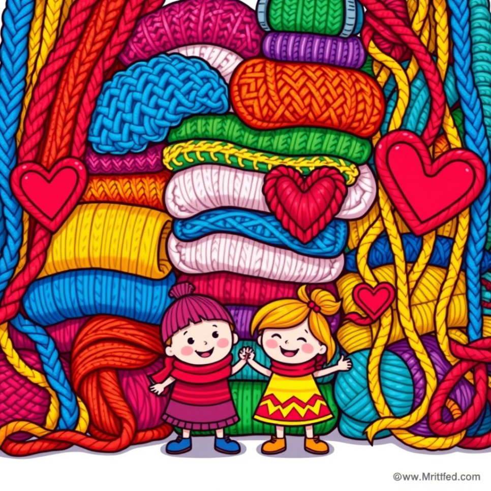 실타래 마을 친구들은 매년 '단추마을 잔치'에서 뜨개 옷 대회를 열었어요. 이 대회는 자신들이 만든 가장 멋진 뜨개 작품을 뽐내는 자리였죠. 올해는 더욱 특별한 잔치였어요. 실들이 모두 힘을 합쳐 만든 아름다운 뜨개 옷들이 가득했기 때문이죠. 보송보송한 아기 옷, 따뜻한 목도리, 귀여운 모자, 심지어 예쁜 인형 옷까지, 다채로운 작품들이 단추마을 잔치 마당을 가득 채웠어요.