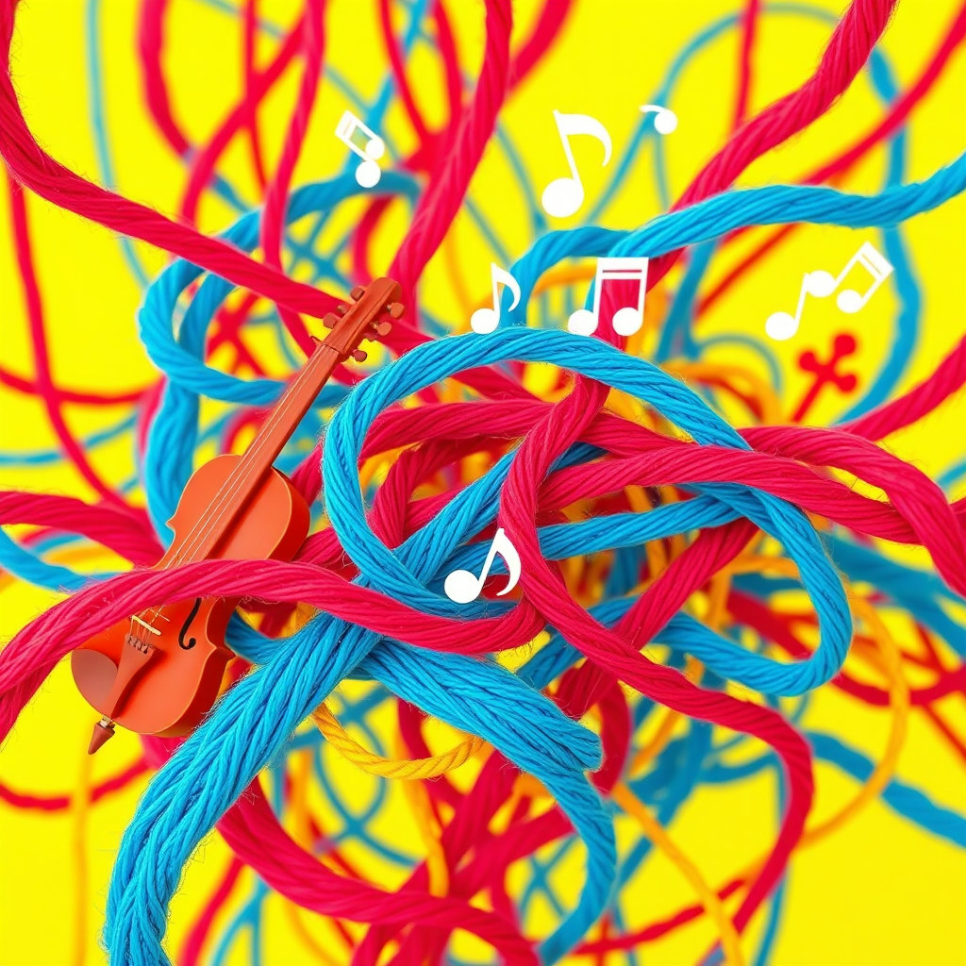 빨강실이 힘찬 선율을 만들면, 파랑실이 시원한 화음을 더하고, 노랑실이 밝은 리듬을 채웠죠. 한 땀 한 땀 엮어질 때마다 실들은 서로의 색깔과 만나 새로운 빛깔을 만들어냈어요. 빨강과 파랑이 만나 보라색이 되고, 노랑과 파랑이 만나 초록색이 되었죠. 마치 오케스트라처럼, 각자의 개성을 가진 실들이 하나가 되어 아름다운 하모니를 이루는 순간이었어요. 이들은 서로의 장점을 살려 멋진 무늬를 완성하며, 협동의 아름다움을 보여주었답니다.