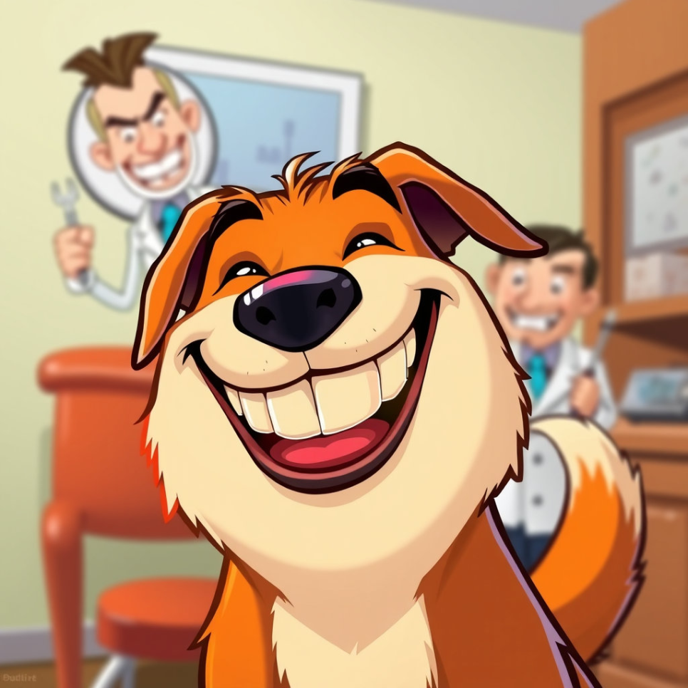 치과의사는 이상한 도구들을 꺼내 왈왈이의 입안을 요리조리 살펴보더니, 의미심장한 미소를 지으며 말했습니다. "음, 아주 간단한 문제군요. 금방 치료해 드릴 수 있습니다." 그러고는 주머니에서 작은 유리병 하나를 꺼냈어요. 왈왈이가 무슨 일이 일어나는지 채 알기도 전에, 치과의사는 왈왈이의 입에 무언가를 가져다 대며 작은 소리로 속삭였죠. "자, 이제 마법이 시작될 거예요… 뿅!"