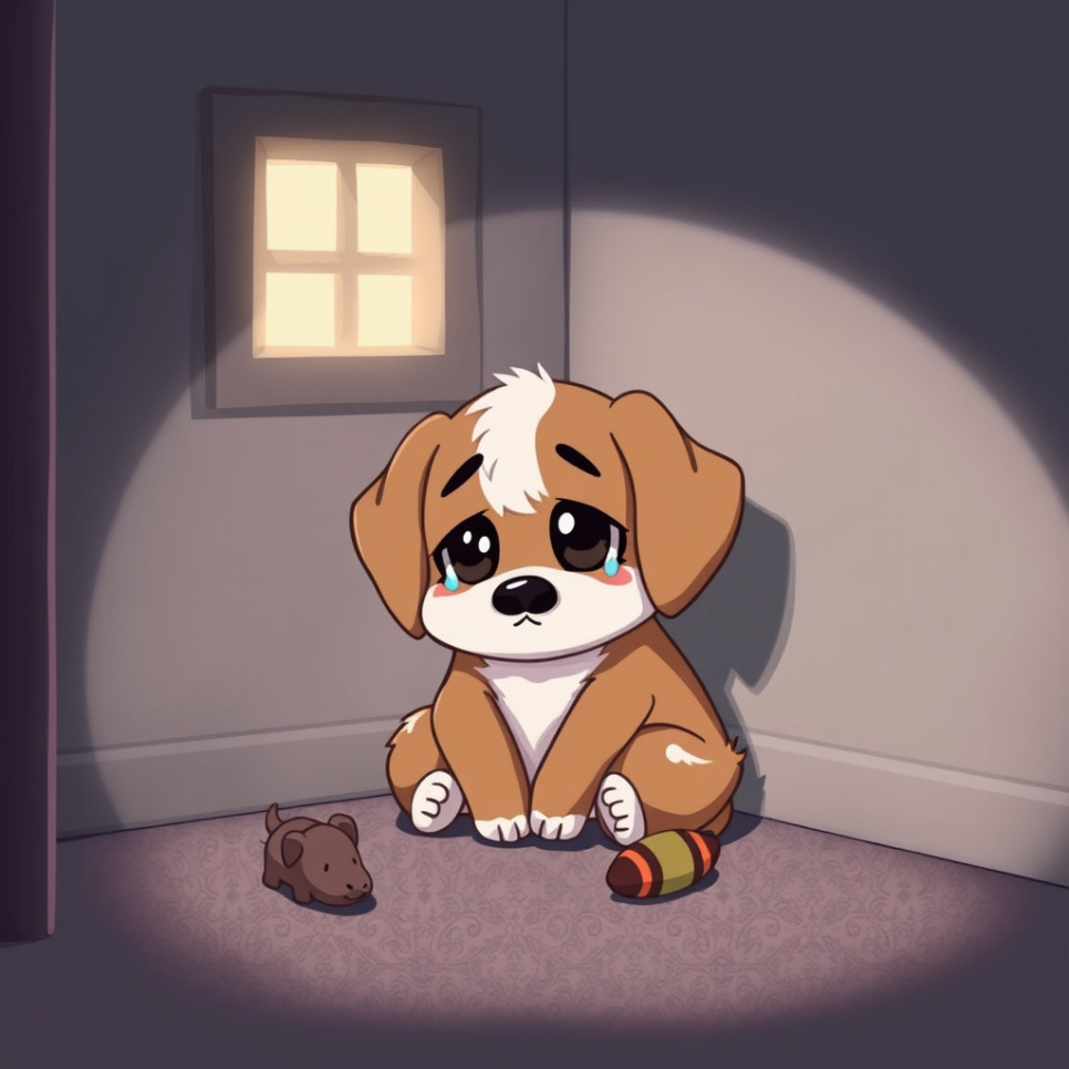 7.슬픔에 빠진 왈왈이: 풀이 죽은 왈왈이의 눈물