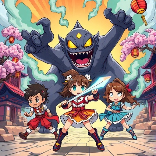 드디어 요괴들과 맞서 싸우는 순간! 모모와 친구들은 힘과 지혜를 합쳐 요괴들을 물리쳤어요. 요괴들은 결국 항복하고, 마을 사람들에게 해를 끼치지 않겠다고 약속했지요. 모모와 친구들의 용기와 우정이 승리를 가져왔답니다.