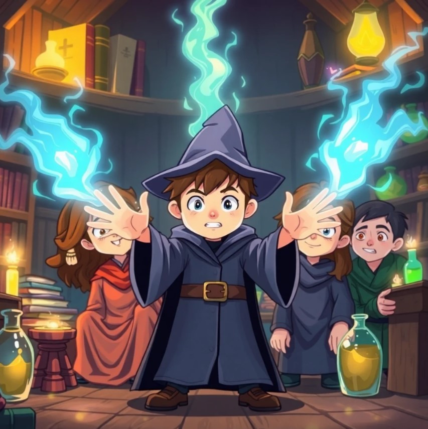 어린 전우치는 호기심이 많고 장난꾸러기였어요. 그는 항상 주변의 신기한 것들을 만지며 마법의 힘을 발견하려고 했죠. 어느 날, 마을 근처의 숲에서 신비한 마법의 돌을 발견하게 되고, 그것이 그의 마법 세계로의 첫 걸음이 됩니다.