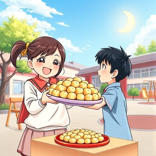 다음 날, 소율이는 마을 아이들과 함께 송편 나눔 잔치를 열었어요.