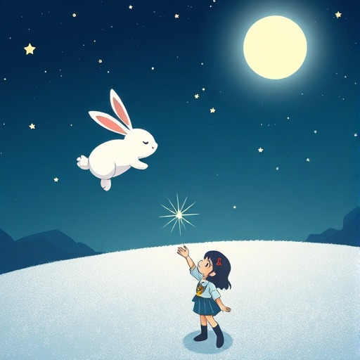 그 순간, 달빛이 흔들리며 내려왔고, 그 속에서 달토끼가 나타났습니다.