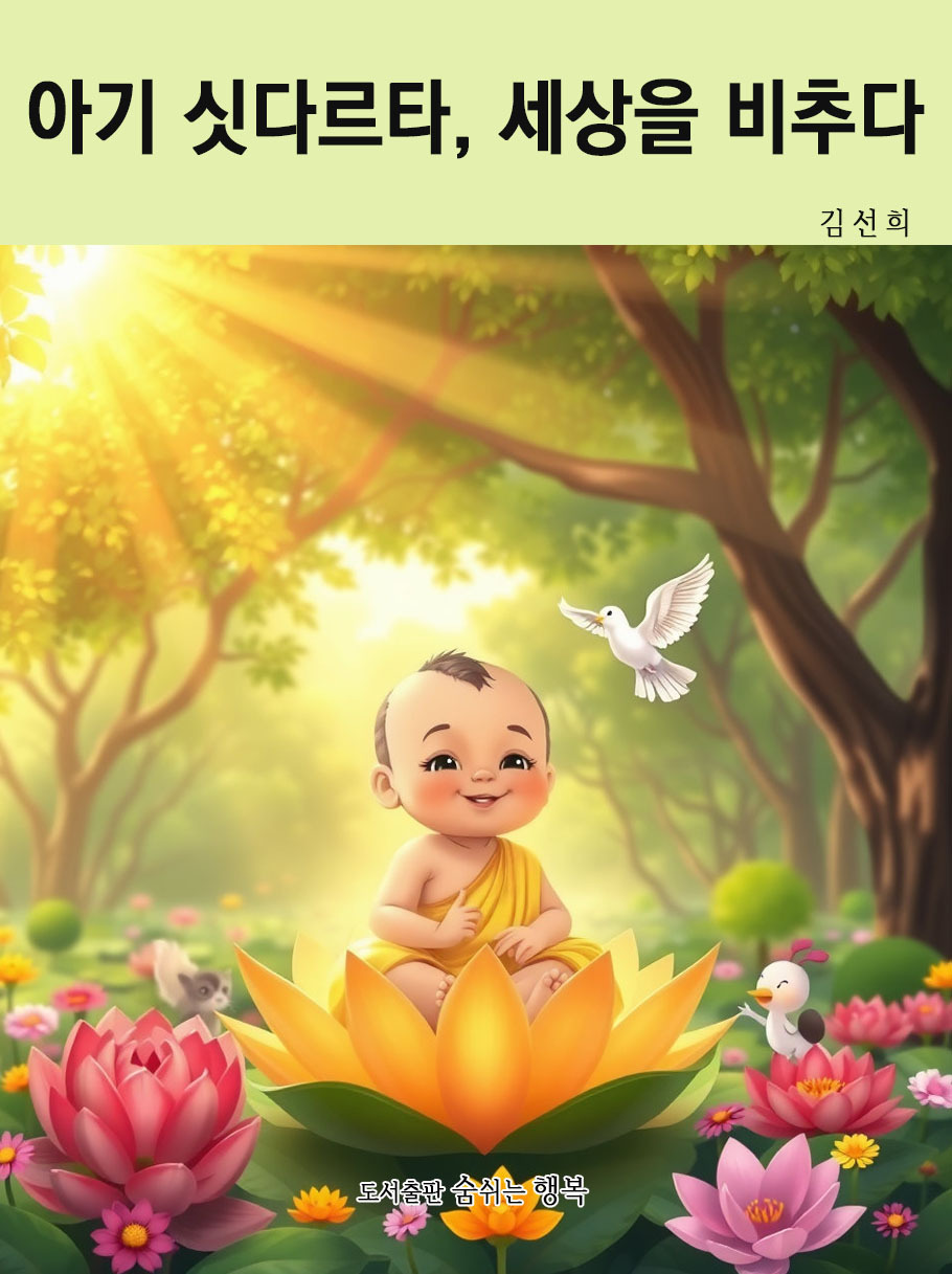 "아기 싯다르타, 세상을 비추다"는 고대 인도의 평화로운 룸비니 동산에서 탄생한 아기 싯다르타가 어떻게 위대한 부처님이 되어 세상의 모든 생명을 위한 지혜와 자비의 빛을 비추게 되었는지를 아름답고 감동적으로 풀어낸 어린이 불교 교육 그림책입니다. 이 책은 한 위대한 인물의 삶과 깨달음의 여정을 통해 인간의 존엄성, 생명의 소중함, 마음의 평화, 그리고 자비와 같은 보편적인 가치를 아이들의 마음에 깊이 심어주는 것을 목표로 합니다.