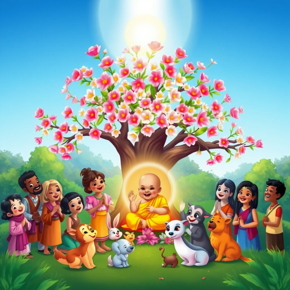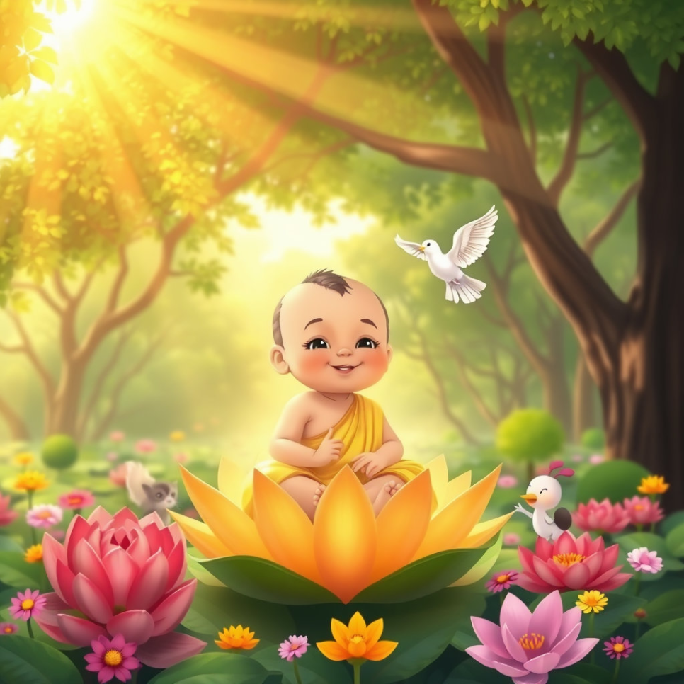 아기 싯다르타의 탄생이라는 작은 씨앗에서 시작된 이야기는, 부처님의 위대한 깨달음과 자비로운 가르침이라는 커다란 평화의 나무로 자라났습니다. 부처님의 가르침은 오랜 시간 동안 많은 사람들의 마음속에 뿌리내리고, 세상을 더욱 밝고 따뜻하게 만드는 힘이 되어주었답니다.