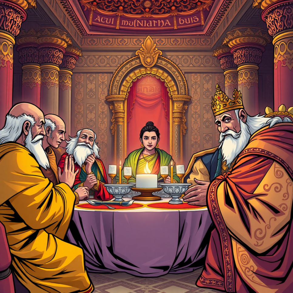 아기 싯다르타는 슈도다나 왕과 마야 왕비의 크나큰 사랑 속에서 왕궁의 빛나는 보물처럼 귀하게 자랐습니다. 아름다운 옷과 맛있는 음식, 멋진 장난감들이 늘 싯다르타 곁에 있었고, 많은 시녀와 신하들이 그의 곁에서 정성껏 보살폈습니다. 싯다르타는 쑥쑥 자라면서 총명하고 예의 바른 아이로 성장했어요. 책을 읽으면 금세 내용을 이해했고, 어려운 질문에도 깜짝 놀랄 만큼 지혜로운 대답을 하곤 했답니다.