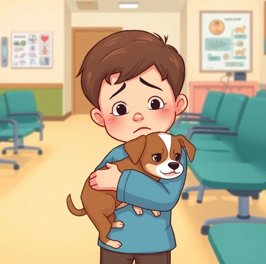 어느 날, 강아지가 갑자기 다리를 절며 걸음을 걷지 못합니다. 민우는 걱정이 되어 부모님과 함께 병원에 데려갑니다. 수의사는 강아지가 다리를 삔 것이라고 알려줍니다. 민우는 강아지가 아프고 불편한 모습을 보며 안타까워하지만, 강아지가 편안하게 치료를 받도록 도와주며 위로합니다. 이 경험을 통해 민우는 애완동물의 아픔을 공감하고, 강아지를 더욱 잘 돌보게 됩니다.