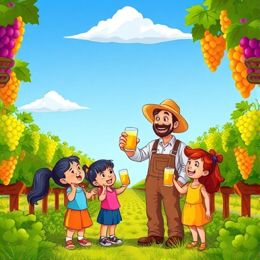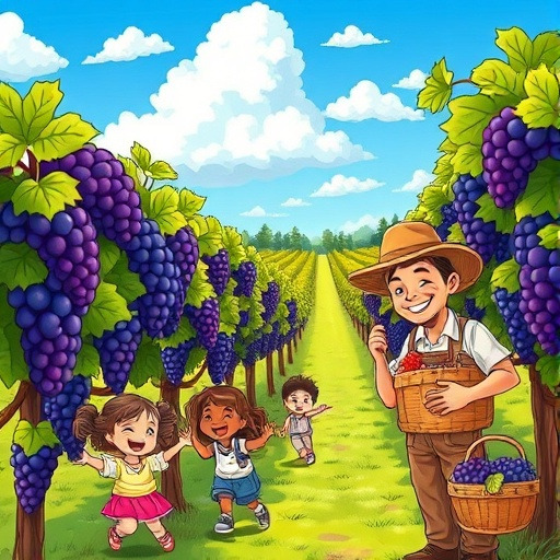 마지막으로, 농부와 아이들은 포도밭에서 작은 파티를 열었다. 포도주스를 맛보며 포도송이들의 여행 이야기를 나누었다. “포도가 이렇게 멋진 변화를 겪다니, 우리도 배울 점이 많아요!” 아이들은 웃으며 이야기했다. 포도밭은 여전히 햇살 아래 반짝였고, 포도송이들은 다음 해에도 새로운 모험을 준비하며 잠들었다.