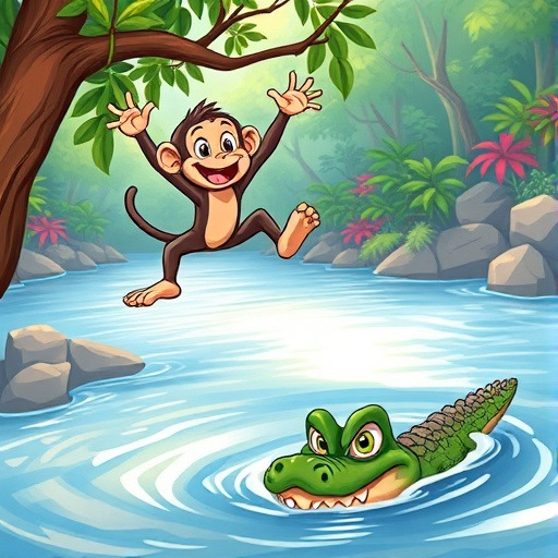 숲 속의 원숭이 마루는 악어와의 위기를 통해 중요한 교훈을 배웠어요.