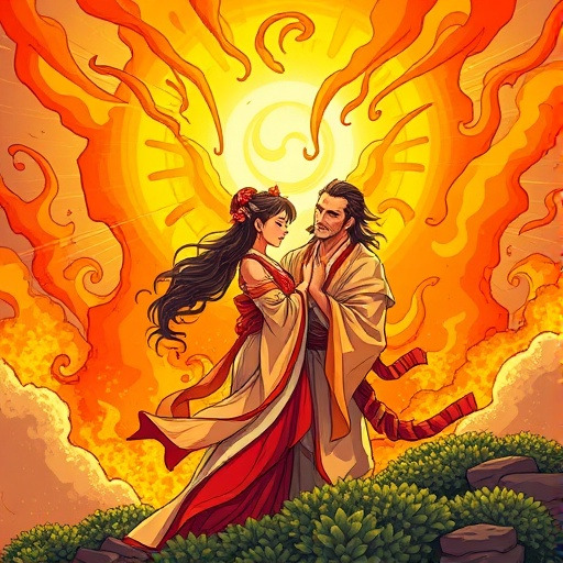 이자나기와 이자나미는 손을 맞잡고, 그들의 사랑으로 세상을 완성해 갔답니다.