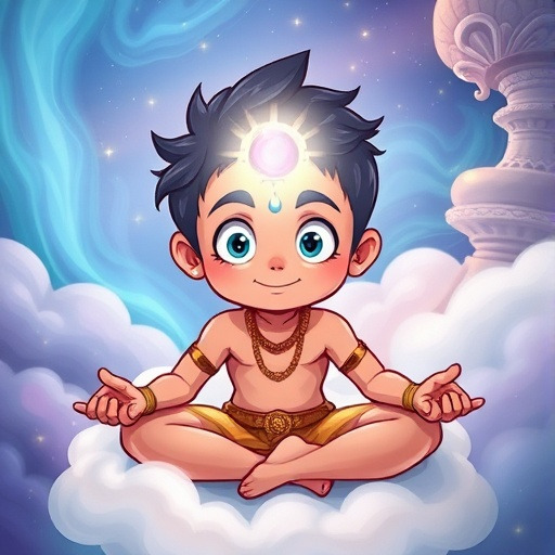 어느 날, 깊은 명상 속에서 시바 신은 특별한 힘을 깨닫고, 세 번째 눈이 생겼어요. 이 눈은 진실을 보고, 악을 꿰뚫는 힘을 주었죠. 세 번째 눈의 탄생과 함께 시바는 자신의 책임과 역할을 더욱 깊이 이해하게 되었어요. 이제 그는 단순한 장난꾸러기가 아닌, 세상을 지킬 수 있는 힘을 가진 존재가 되었답니다.