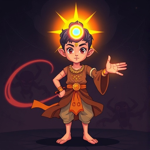 세상에 나타난 작은 악마가 마을을 어지럽히고 사람들을 혼란스럽게 했어요. 시바는 장난스럽게 웃던 어린 시절과 달리, 세 번째 눈을 사용해 악마의 장난을 꿰뚫고 막아냈죠. 악마는 놀라 도망쳤고, 사람들은 시바의 지혜와 용기에 감탄했어요.
