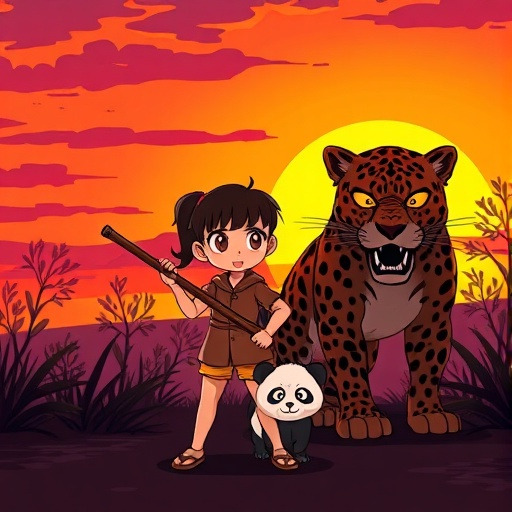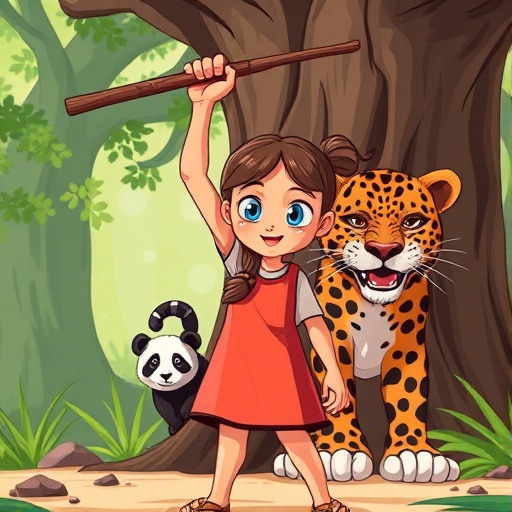 하지만 어느 날, 그 평화는 산산이 부서집니다. 배고픈 표범이 나타나 어린 판다를 공격하려 한 것입니다. 그 순간, 소녀는 단 1초도 망설이지 않았습니다. 자신보다 훨씬 크고 무서운 표범 앞에 뛰어들어 막대기를 휘두르며 친구를 지켰습니다. 소녀의 용기 덕분에 아기 판다는 목숨을 구했지만, 소녀는 안타깝게도 그 자리에서 쓰러지고 맙니다.