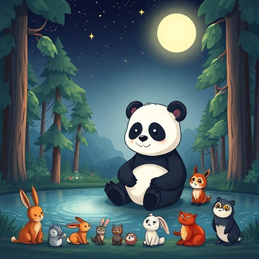 어느 달빛 밝은 밤, 판다는 친구들을 모아 숲 속에서 축제를 열었어요. 달빛이 반짝이는 호수 위에서 춤추고 노래하며, 모두가 즐거운 시간을 보냈답니다. 판다는 큰 웃음을 지으며 “우리가 함께라면 어떤 어려움도 이겨낼 수 있어!”라고 외쳤지요.