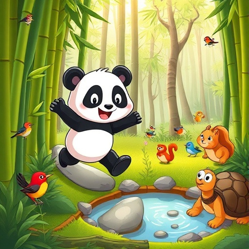 어느 날, 판다는 숲 깊은 곳에서 맛있는 대나무를 찾기로 결심했어요. 길을 따라가다 보니 숲 속 깊은 구멍과 반짝이는 연못을 발견했지요. 판다는 겁내지 않고 조심스럽게 모험을 이어갔어요. 결국, 판다는 숲 속의 가장 맛있는 대나무를 찾아 친구들에게 자랑스럽게 나누어 주었답니다.