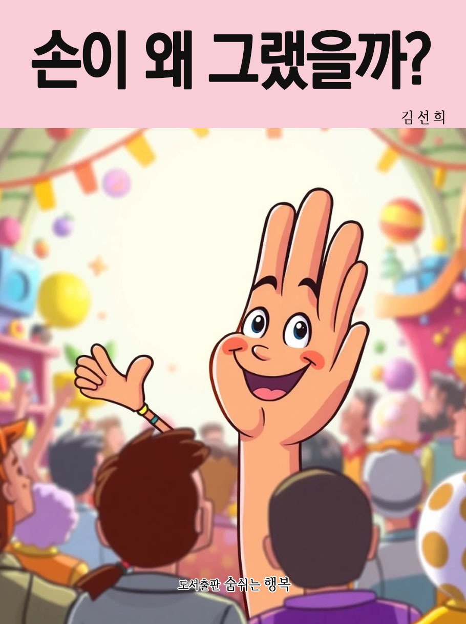 어느 날, 손이의 오른손이 깜짝 놀라며 말을 해요. “이제 그만해! 나 아파!” 손이는 깜짝 놀라 손을 꼭 쥐어요. "내 손이 말하다니… 꿈인가?"