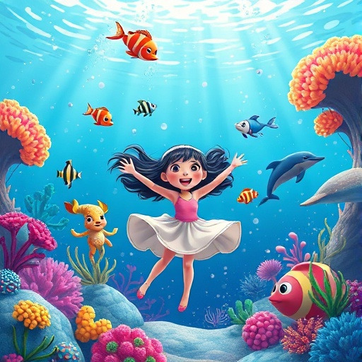 깊은 바다 속, 루미는 빛나는 산호 동굴을 발견했어요. 산호는 마치 무지개처럼 반짝였고, 작은 물방울마다 빛이 반사되어 신비로웠죠. 루미는 숨을 죽이고 동굴을 탐험하며, 자신도 바다 속에서 특별한 존재임을 느꼈답니다.