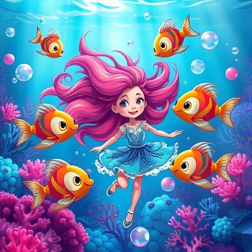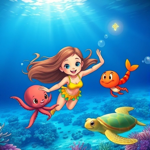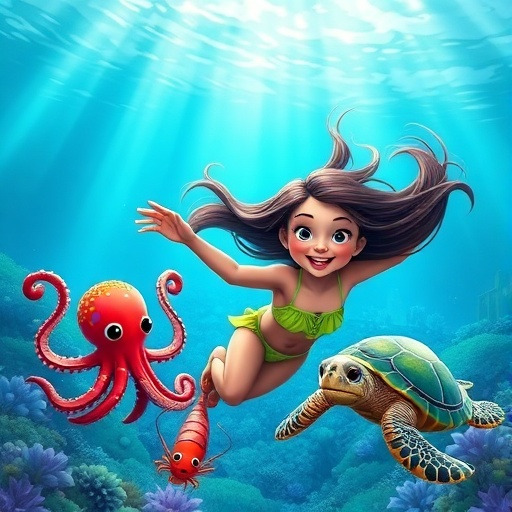 루미는 바다 속 친구들을 찾아 모험을 시작했어요. 작은 문어, 장난꾸러기 새우, 느긋한 거북이까지! 처음엔 다가가기 어려웠지만, 루미의 친절한 마음과 호기심 덕분에 모두 친구가 되었답니다. 친구들과 놀면서 루미는 자신이 특별한 이유를 조금씩 깨닫기 시작했어요.