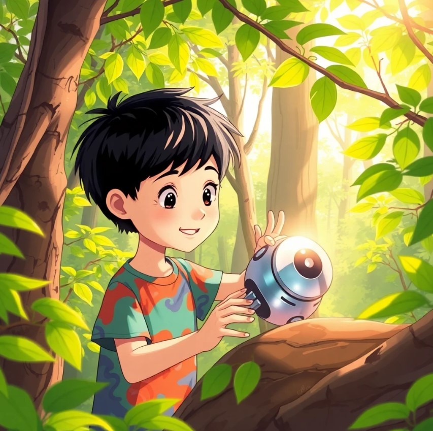 호기심 많은 소년 태오가 숲을 산책하다가 낯선 금속 덩어리를 발견하고 조심스럽게 다가가요.