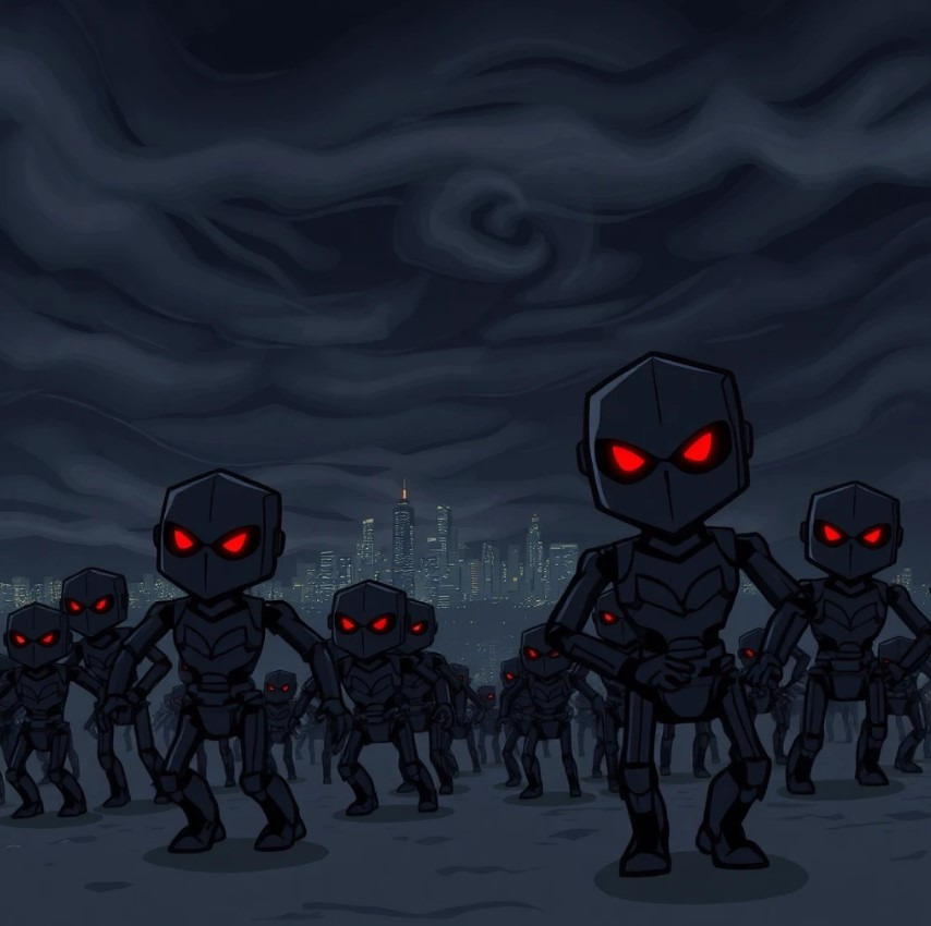 악당 기계 '다크봇' 무리들이 지구의 에너지를 훔치기 위해 도시로 다가오고 있어요.