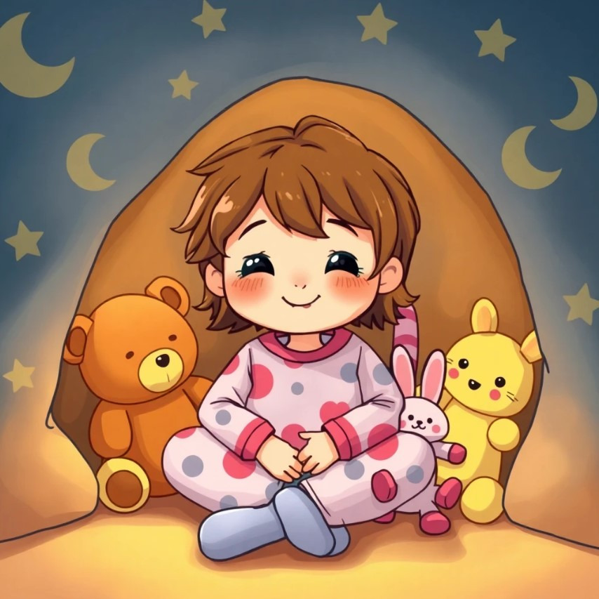 책상 밑에 이불을 깔고, 좋아하는 책과 인형을 모아 비밀 아지트를 만든 민지. 혼자만의 공간이 생기자 마음이 든든해졌어요.