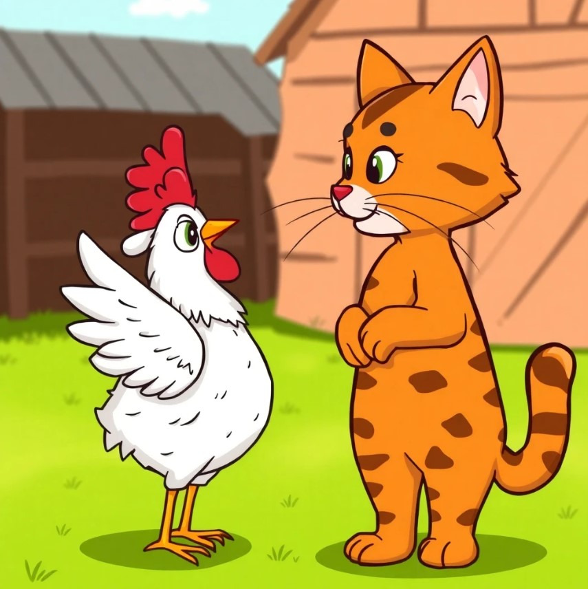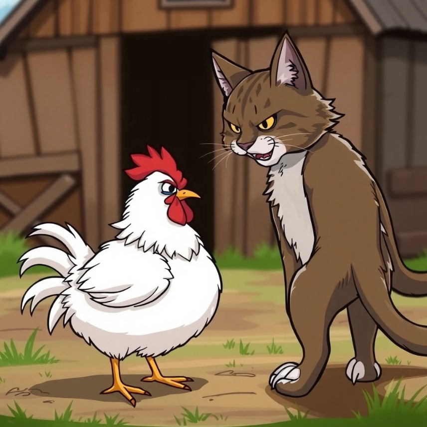 마당 밖 세상은 생각보다 많은 도전이 기다리고 있었습니다. 꼬꼬는 길을 가다 보니, 갑자기 큰 고양이를 만났어요. 고양이는 꼬꼬를 노려보며 다가왔죠. “너는 내 밥이 될 거야!” 꼬꼬는 무서웠지만, 도망치지 않고 용기 있게 고양이와 맞섰어요. “내가 가야 할 길이 있어, 너와 싸울 시간이 없단 말이야!” 고양이는 꼬꼬의 용기에 놀라며 물러섰습니다.