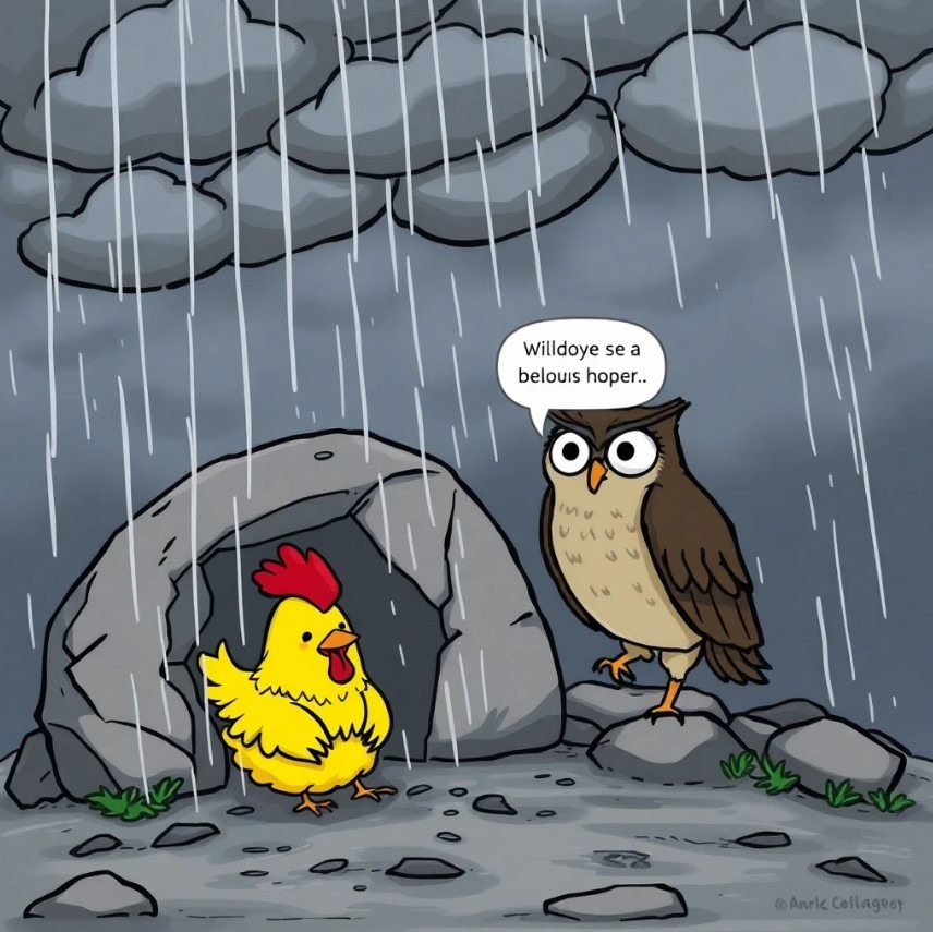 꼬꼬는 숲 속을 여행하며 또 다른 위기에 맞닥뜨렸습니다. 갑자기 폭풍이 몰아쳤고, 꼬꼬는 큰 바위 뒤에 숨으며 폭풍이 지나갈 때까지 기다렸어요. 그때, 부엉이는 말했어요. “세상은 때로는 어렵고, 힘든 순간이 올 거야. 하지만 그것이 너의 꿈을 더욱 빛나게 만들 거야.” 폭풍이 지나가고, 꼬꼬는 더욱 강해졌어요. 이제는 자신감 있게 하늘을 쳐다보며 날개를 펼쳤습니다.