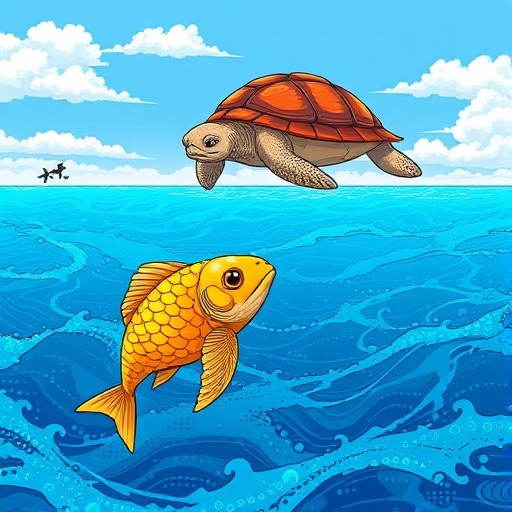 쿠르마의 등껍질은 바다 위에서 마치 섬처럼 반짝였고,