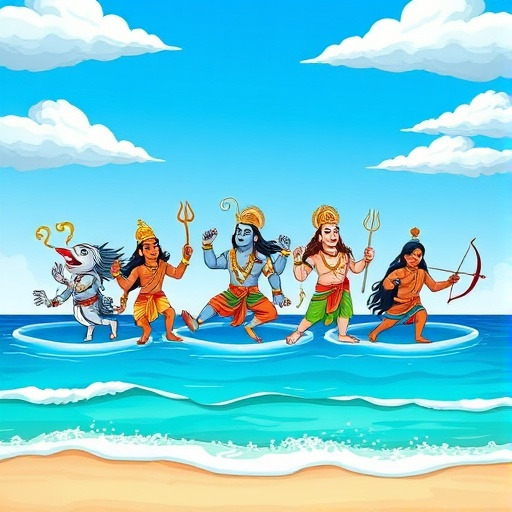 환생마다 비슈누는 사람, 동물, 신, 악마와 얽히며 세상을 지키기 위해 모험을 펼쳤어요.
