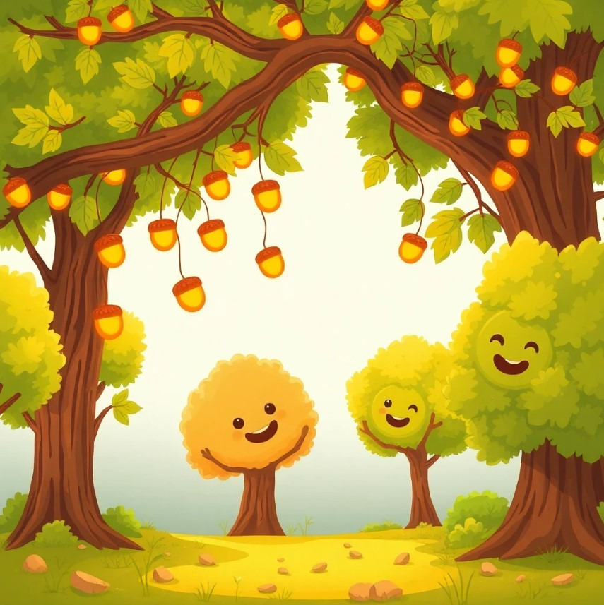 상수리열매가 자라며 큰 나무가 될 수 있는 가능성을 꿈꾸는 이야기.