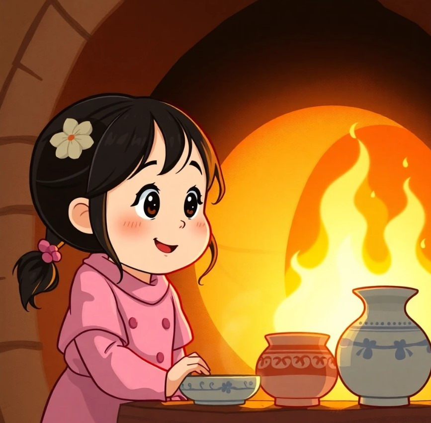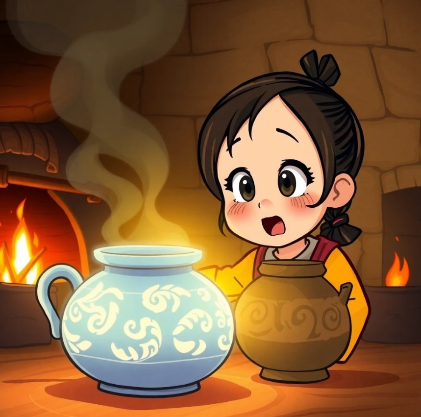 수민이가 만든 도자기를 불에 구우면서, 도자기 속에서 점점 빛나는 에너지가 퍼져나갔습니다. 마법의 도자기는 불 속에서 더욱 빛을 발하고, 수민이의 손에 들린 도자기에는 마치 혼이 깃든 것처럼 강력한 에너지가 감돌고 있었습니다.