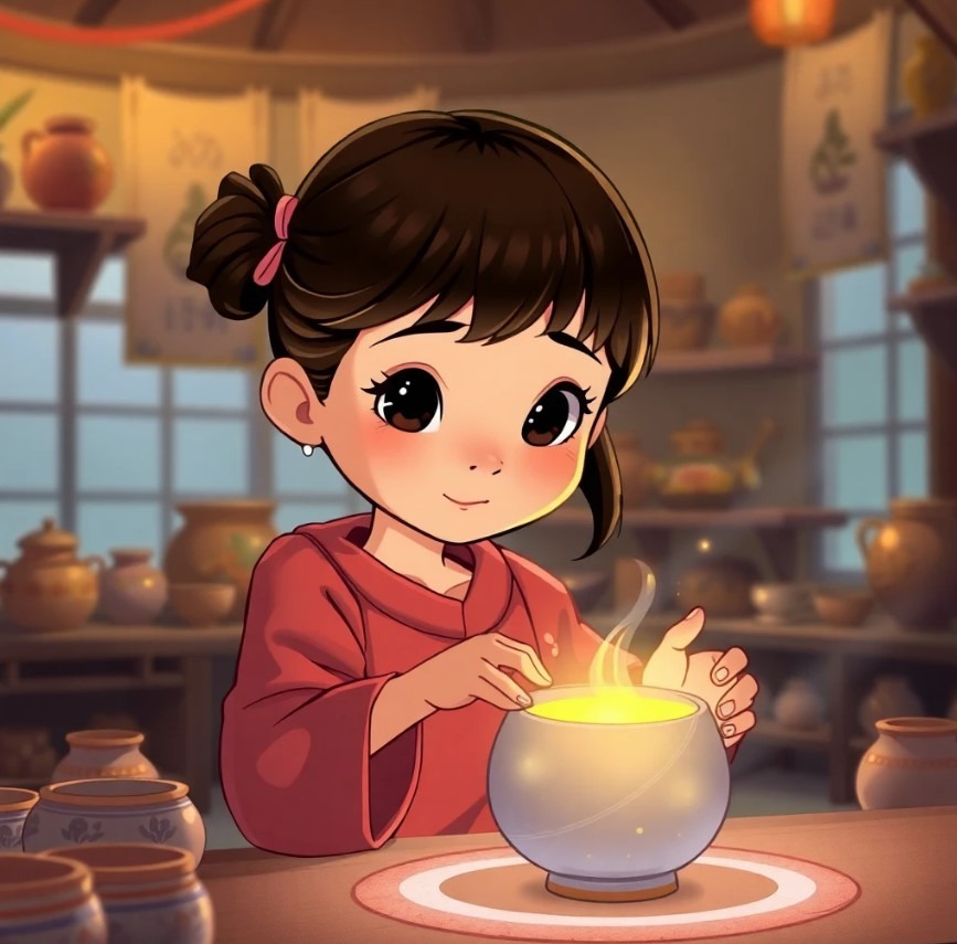 옛날, 한 작은 마을에 도공들이 살고 있었습니다. 그들은 흙으로 아름다운 도자기를 만들었고, 마을 사람들은 그 도자기를 소중히 사용했습니다. 어느 날, 어린 도공인 수민이는 마을 밖에서 신기한 흙 덩이를 발견합니다. 그 흙 속에서 빛나는 마법의 힘을 느낀 수민이는 그 흙으로 도자기를 만들기로 결심합니다.