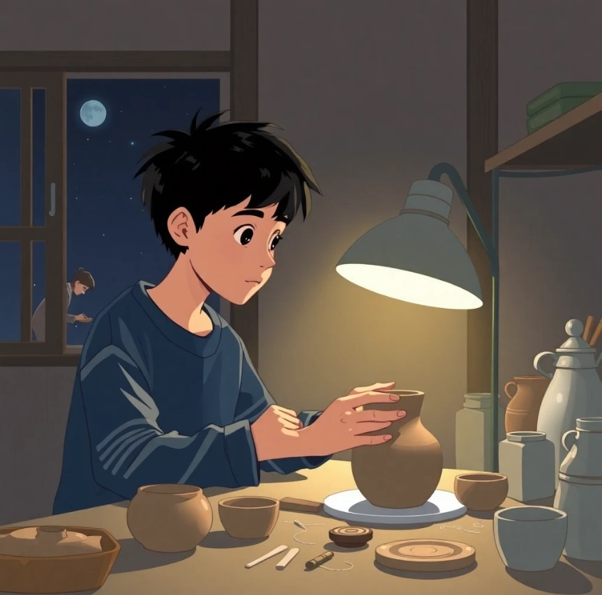 그러던 어느 날, 수민이는 마을 외곽에서 특별한 흙 덩이를 발견하게 됩니다. 그 흙은 평범한 흙과 달리 빛을 내고 있었고, 수민이는 그것이 평범한 흙이 아님을 직감하게 됩니다. 그는 그 흙으로 도자기를 만들기로 결심하고, 많은 실수를 겪으면서도 끝까지 포기하지 않고 도전합니다. 그러던 중, 도자기가 완성될 때마다 마법 같은 일이 일어나기 시작합니다. 도자기가 마을 사람들에게 소원을 이루어 주고, 사람들의 마음을 따뜻하게 변화시킵니다.