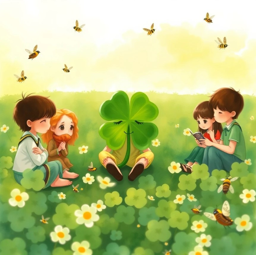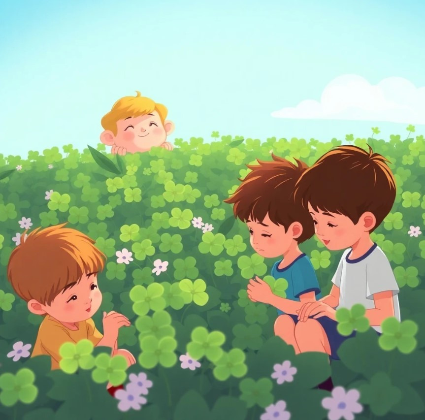 진짜 행운은 네잎클로버를 찾는 것이 아니라, 서로의 마음을 나누고 함께 웃는 그 순간이라는 메시지.