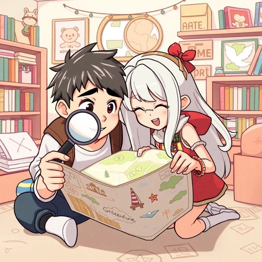 지우는 루루와 함께 편지에 적힌 단서를 따라 마을을 탐험하며 수수께끼를 풀기 시작해요.