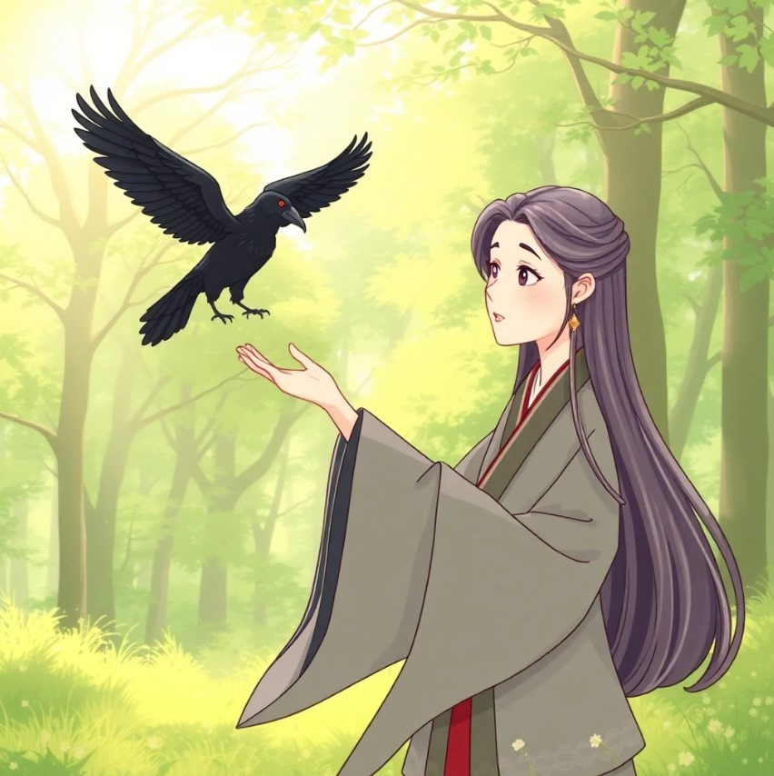 하루는 황진이가 숲을 지나가던 중, 까마귀 한 마리가 그의 어깨에 앉았습니다. 까마귀는 말했어요. "황진이, 네가 진정한 아름다움을 찾고 싶다면, 내게 약속을 해야 한다. 그것은 다른 이들의 아픔을 공감하고, 그 아픔을 함께 나누는 것이다." 황진이는 까마귀의 말에 귀 기울이며 약속을 하게 됩니다.