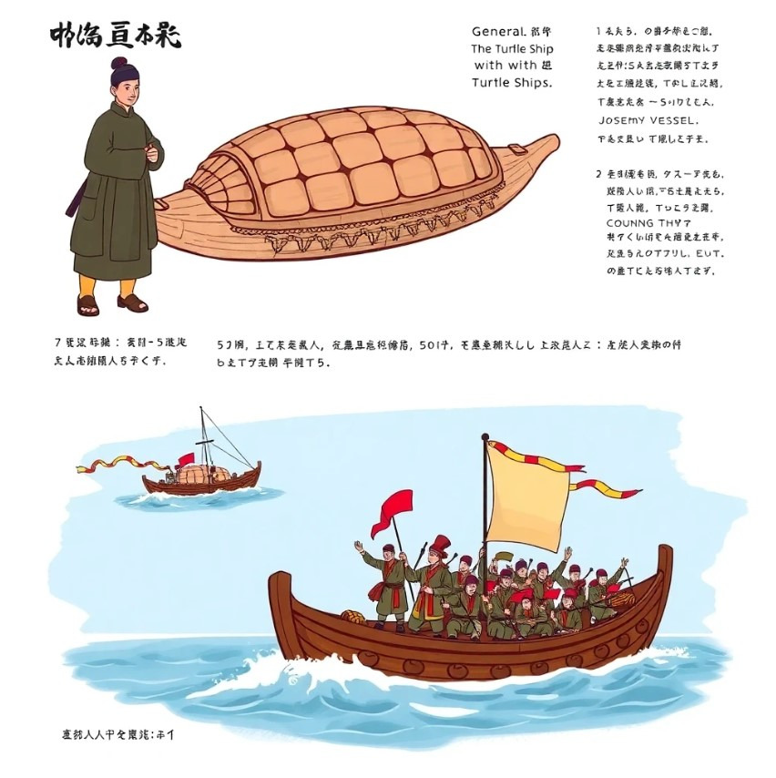 거북선은 조선의 영웅, 이순신 장군이 만든 특별한 배입니다. 이 배는 적의 배를 쉽게 물리칠 수 있는 강력한 방어력을 가지고 있었어요. 장군은 거북선의 뾰족한 갑판과 강력한 무기들로 적군을 물리칠 수 있기를 바랐죠. 거북선은 마치 바다 위의 철갑옷처럼 튼튼하고, 마치 거북이처럼 적의 공격을 막아냈어요.