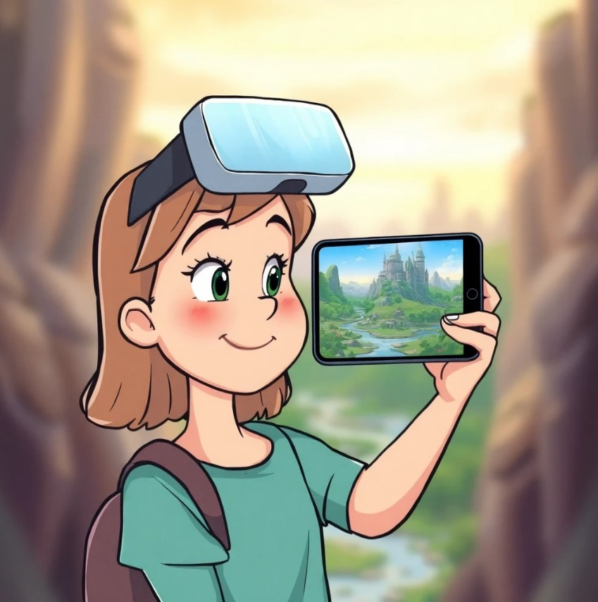 마르야는 앤에게 특별한 앱을 소개합니다. 이 앱은 단순히 소통을 넘어서, 현실의 풍경을 가상 현실로 변환시켜주는 신기한 기능을 가집니다.