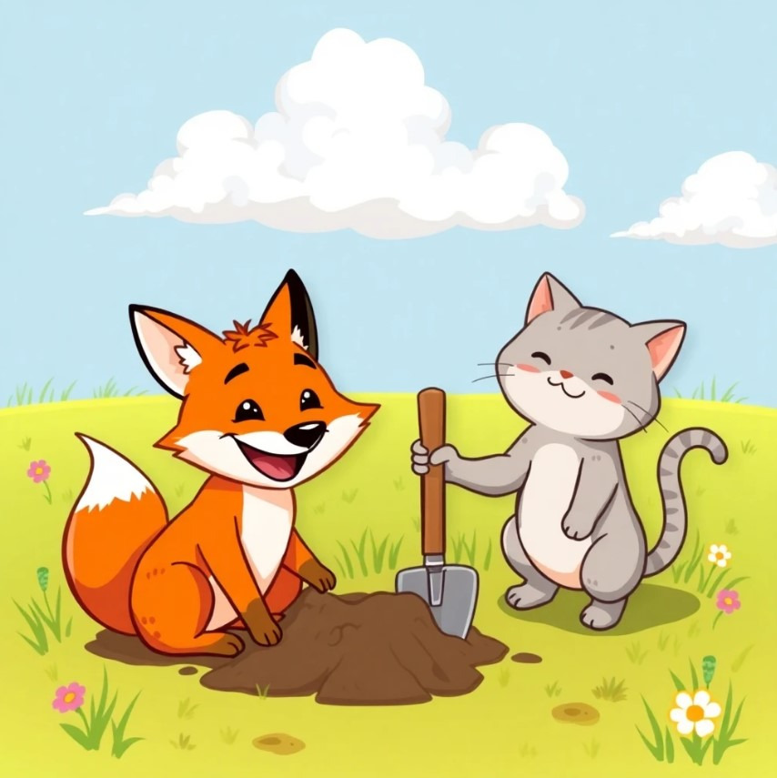 여우는 손으로 땅을 파고 말했어요.