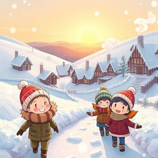 겨울이 찾아온 작은 마을, 하얀 눈이 소복이 쌓인 길 위를 어린 주인공이 걸었습니다. 눈이 반짝이며 햇살을 받아 반짝이는 모습을 보며 주인공은 기분 좋게 웃었습니다. 오늘도 마을 사람들은 바쁘지만 따뜻하게 하루를 시작하고 있었습니다.