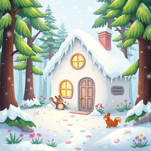 겨울이 찾아온 작은 마을, 주인공 어린이는 눈 덮인 숲 속에서 신비로운 눈의 집을 발견합니다. 이 집은 눈과 얼음으로 만들어져 있었지만, 안으로 들어가면 따뜻하고 반짝이는 마법의 공간이 펼쳐졌습니다.